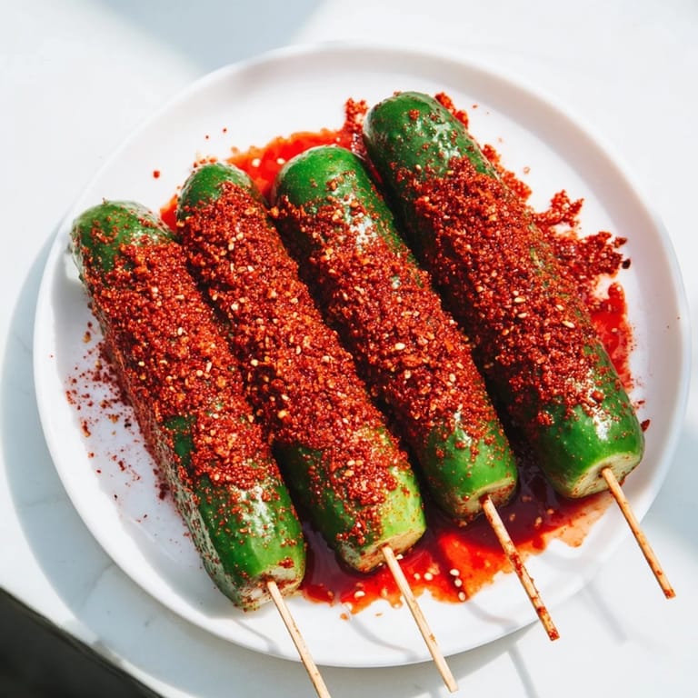 Save to Pinterest I stumbled on chamoy pickles at a tiny market cart tucked between two taco stands, where the vendor was coating them with practiced speed. The first bite was chaos—sweet, sour, salty, spicy—all at once, and I couldn't stop reaching for another. I asked what made them so addictive, and she just winked and said, "Chamoy and Tajín fix everything." That afternoon, I bought a jar of pickles and tried it myself in my kitchen. Now they're my go-to snack when I need something that wakes up every corner of my mouth.