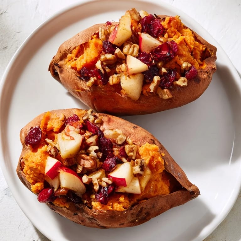 Save to Pinterest Cozy, colorful, and loaded with sweet, tart, and spiced flavors, these twice-baked sweet potatoes are a perfect fall and holiday side dish.