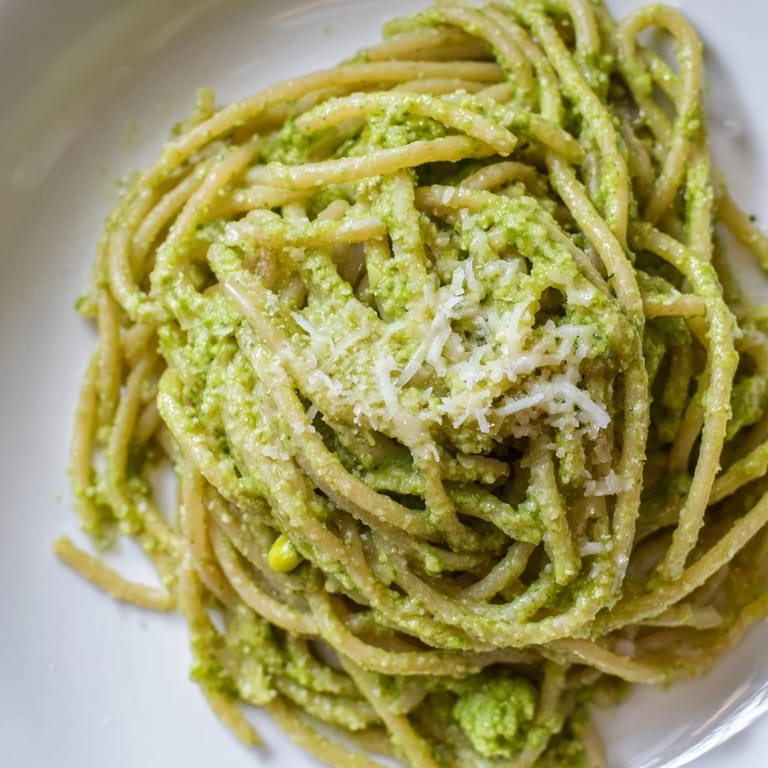 Save to Pinterest The first time I made this pesto, I was completely broke and trying to impress a dinner guest with something that felt fancy but cost about eight dollars total. I stood in the grocery store aisle staring at pine nuts, did some mental math, and grabbed the sunflower seeds instead with a silent apology to tradition. Now honestly prefer it—the seeds have this gentle sweetness that plays so beautifully with basil, and something about the texture feels more grounded, less pretentious. My friend asked for seconds and the recipe has stayed in regular rotation ever since, through feast times and lean times alike.