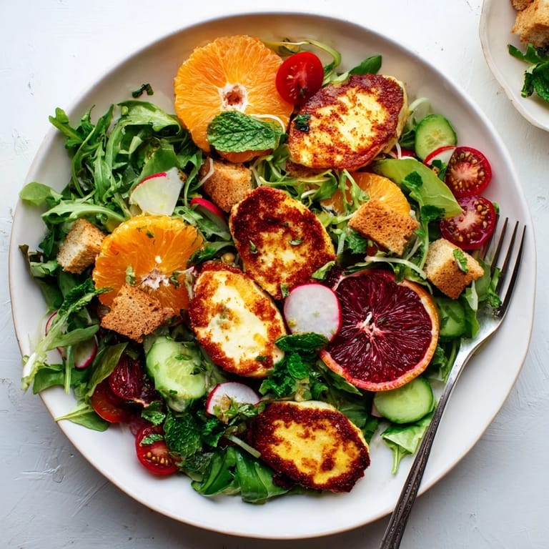 Save to Pinterest The first time blood oranges appeared in my winter market basket, I almost regretted buying them, their crimson flesh staining everything they touched. Then that evening, I pan-fried some halloumi and threw together whatever vegetables I had, and suddenly those staining juices became the most gorgeous dressing I had ever seen. Now this salad is what I make when I need something that looks like sunshine but eats like comfort. The way the warm, salty cheese mingles with citrus still feels like magic every single time.