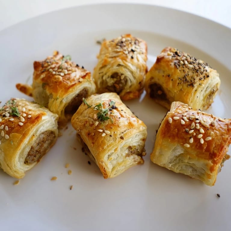 Ensure to lightly flour the surface before rolling out the pastry to avoid sticking and handle the sausage mixture gently for the best texture.