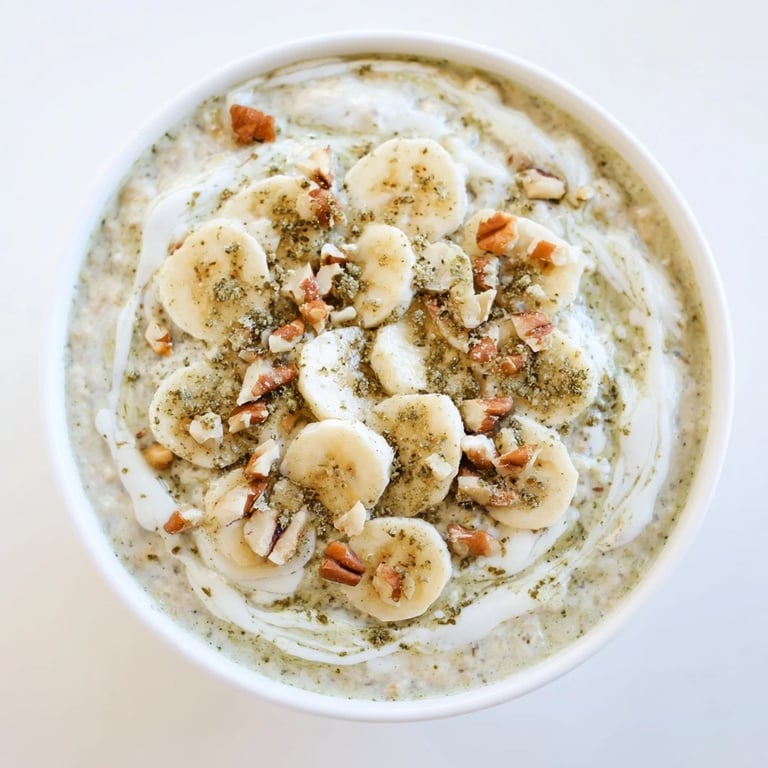 Save to Pinterest A festive, creamy overnight oats recipe blending the holiday flavors of eggnog and matcha with a boost of protein—perfect for a nourishing breakfast on busy mornings.