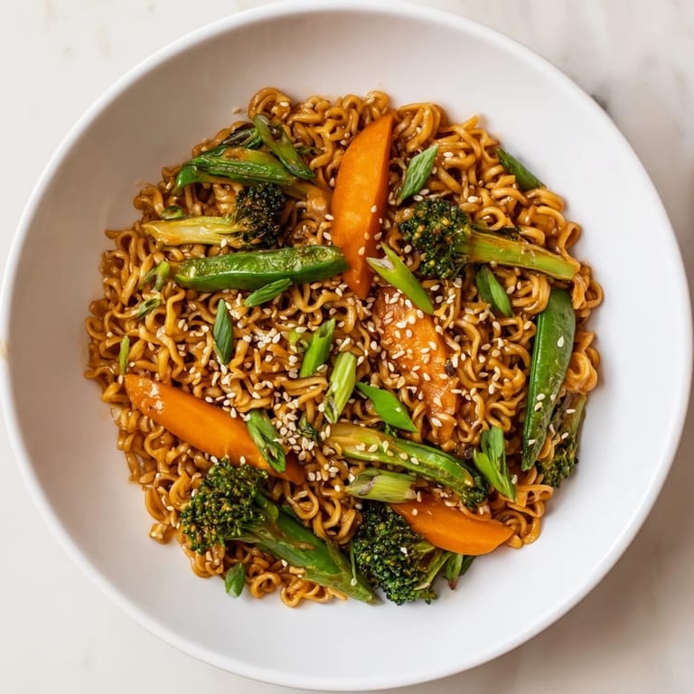 I discovered this ramen noodle stir-fry on a busy weeknight when pantry ingredients and frozen veggies saved dinner. It's now a staple when time is short but flavor is a must.