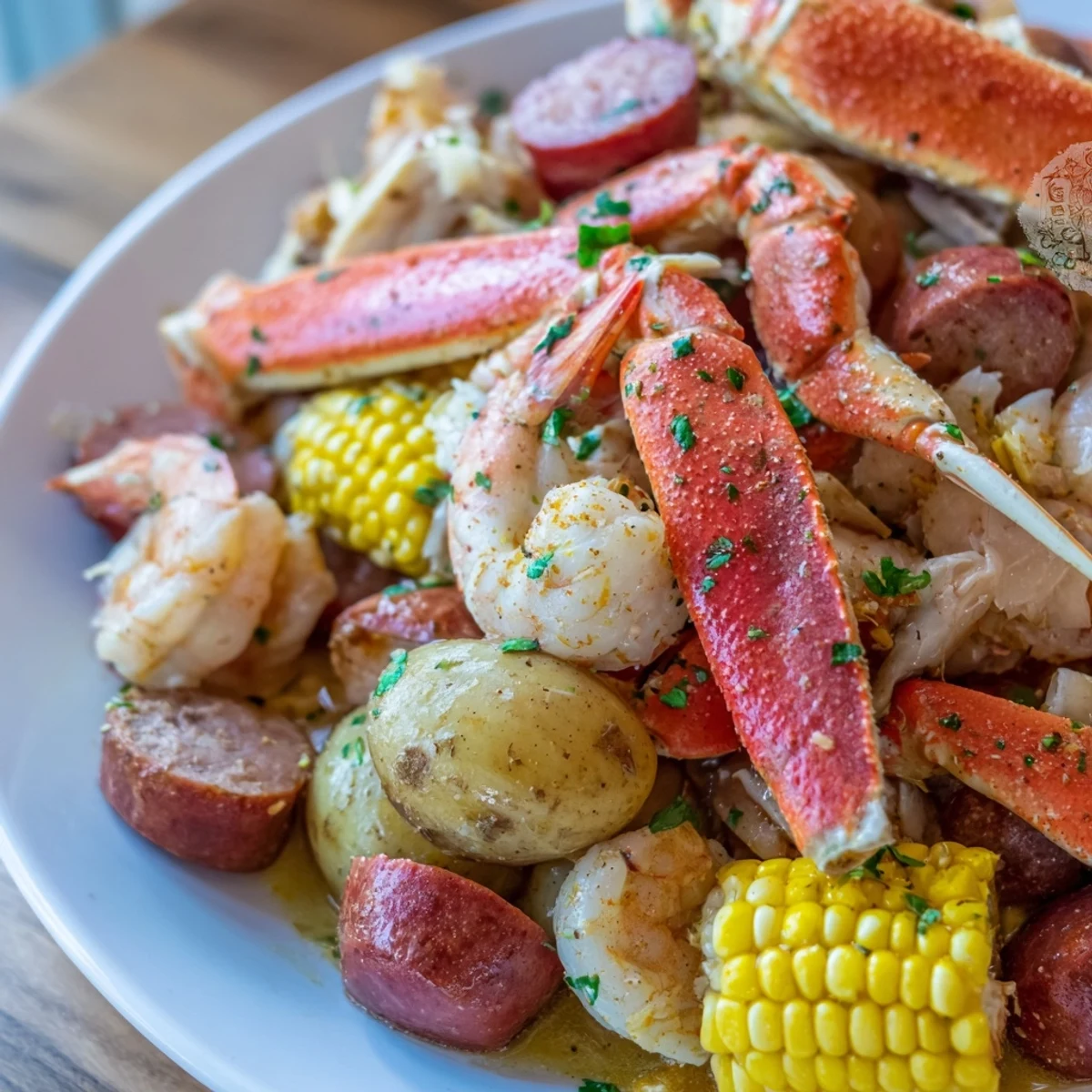 Save to Pinterest A festive, flavor-packed Southern-style seafood boil with juicy crab legs, plump shrimp, spicy sausage, potatoes, and corn, all tossed in aromatic Cajun spices. Perfect for sharing!