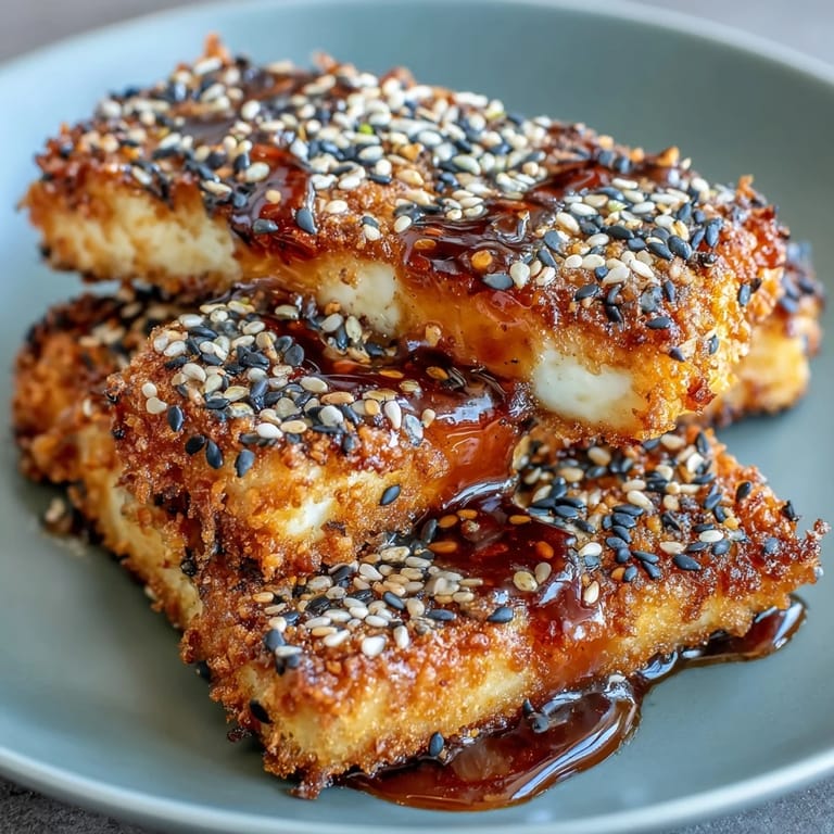 For an even deeper flavor, you can marinate the tofu slabs in soy sauce for 20 minutes before starting the crusting process. Using a tofu press or heavy weight to remove as much moisture as possible is essential for the best texture.