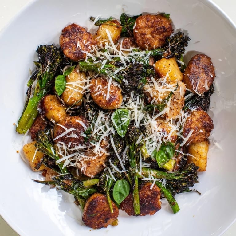 Save to Pinterest I stumbled onto this sheet pan gnocchi bake on a Wednesday night when the fridge was half-empty and my energy was running on fumes. I tossed what I had onto a tray, slid it into the oven, and twenty minutes later pulled out something that looked like I'd actually tried. The gnocchi had crisped up at the edges, the sausage released its oils into every corner, and the broccolini charred just enough to taste like intention. It's been my fallback ever since.