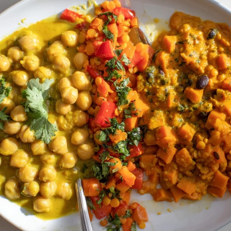 Save to Pinterest A vibrant collection of three easy, one-pot curries inspired by different world cuisines. Perfect for weeknights, these curries are packed with flavor and can be made with minimal fuss in a single pan.