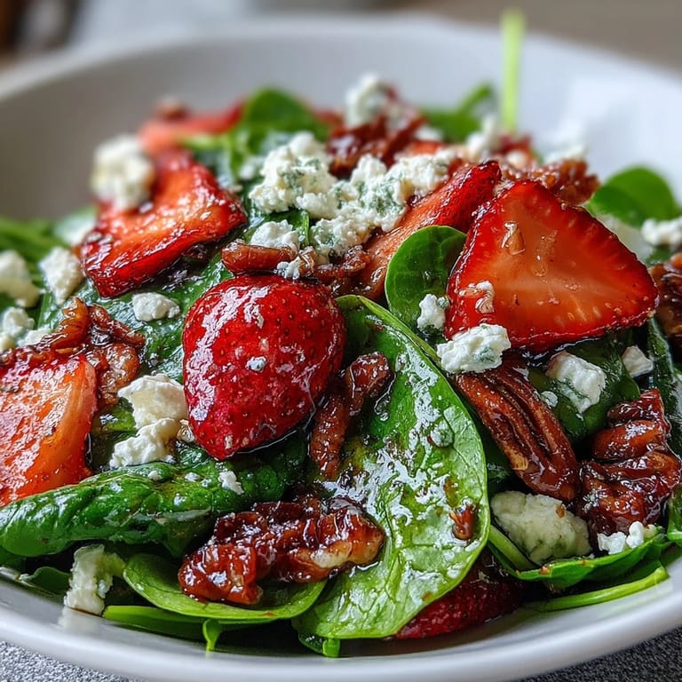 Save to Pinterest Sunlight streamed through the kitchen window that morning, casting playful shadows on a heap of fresh spinach I’d just rinsed. Sometimes I stumble into recipes by accident & this one happened after my neighbor brought over a basket of strawberries so fragrant I couldn’t ignore them. I decided to toss them with the spinach & candied pecans I had left from a baking spree, curious about what would happen next. Goat cheese lent a creamy surprise, balancing the bright tartness of the berries. The quick tang of balsamic vinaigrette sealed the deal & turned everything into a salad worthy of spring’s excitement.