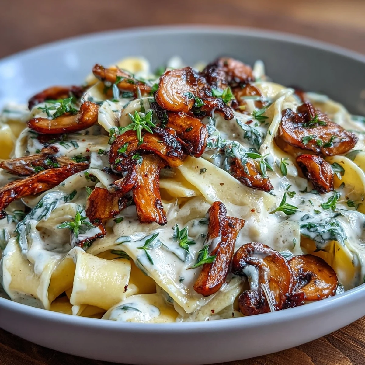 There's something about the smell of mushrooms hitting hot butter that makes you stop what you're doing and just breathe it in. I learned to make this dish on a rainy Tuesday when my roommate showed up with a bag of mixed mushrooms from the farmers market, and we decided right then to turn them into something warm and filling. What started as an experiment with whatever cream and pasta we had on hand became the kind of meal that tastes like you spent hours in the kitchen, even though it takes barely half an hour. The earthiness of the mushrooms, the gentle warmth of thyme, and that silky sauce coating each ribbon of pappardelle—it's the sort of comfort that doesn't require a special occasion.