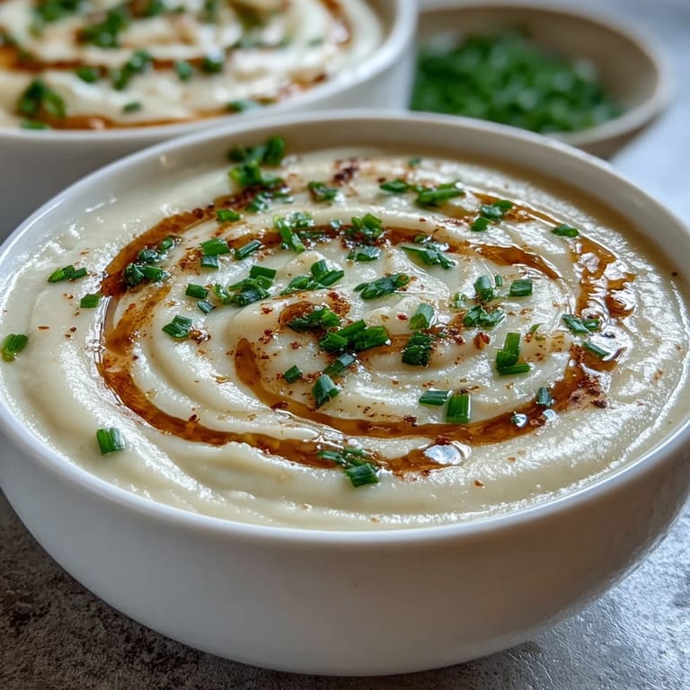 Save to Pinterest The magic of this soup lies in its simplicity. Sweet yellow onions are slowly sautéed until soft and translucent, building a deep, savory base. Garlic and celery add aromatic depth, while the cauliflower florets absorb all those flavors as they simmer gently in low-sodium vegetable broth. Once blended, the result is a luxuriously smooth soup that needs very little embellishment — just a pinch of nutmeg, a seasoning of salt and pepper, and a splash of almond milk to bring it all together. A garnish of fresh chives and a swirl of olive oil or cream turns each bowl into something truly special.