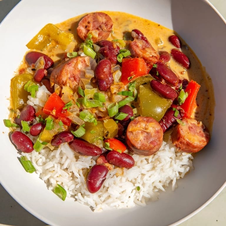 Save to Pinterest A classic Creole dish featuring tender red beans simmered with smoky sausage and aromatic vegetables, served over fluffy white rice. Hearty, flavorful, and perfect for a comforting meal.
