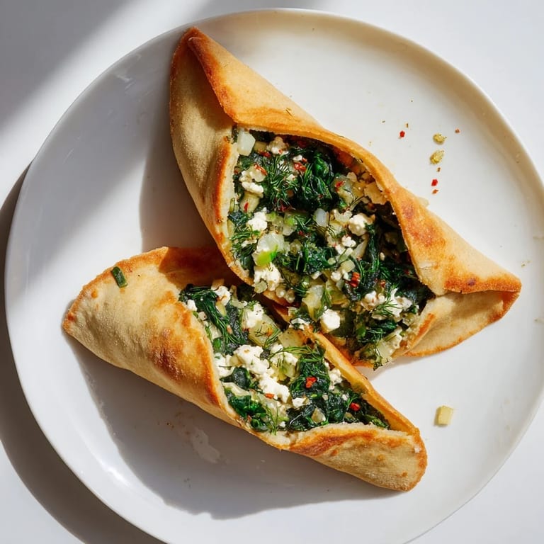 Save to Pinterest There's something about the smell of spinach wilting in a hot pan that takes me back to a small kitchen in Istanbul, even though I've never been there. My neighbor Diane came back from a trip raving about these golden half-moon flatbreads she'd eaten from a street vendor, and one afternoon she walked me through making them at her kitchen table. Within twenty minutes, I had crispy, warm pockets of dough giving way to creamy feta and fresh herbs, and I understood exactly why she couldn't stop talking about them.