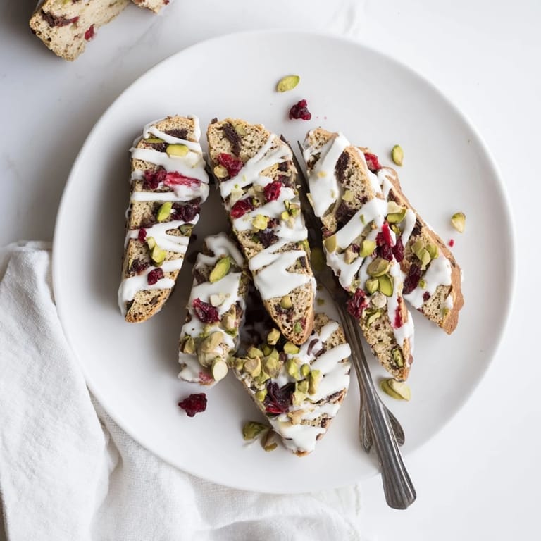 These twice-baked Italian-style biscotti combine tart dried cranberries, crunchy pistachios, and sweet white chocolate for a wonderfully crisp texture. The dough requires no chilling and is easy to prepare. Logs are baked until golden, sliced, and baked again until crisp, then drizzled with melted white chocolate. Ideal for pairing with coffee or gifting, this treat offers a perfect balance of flavors and textures, making it both simple and satisfying.